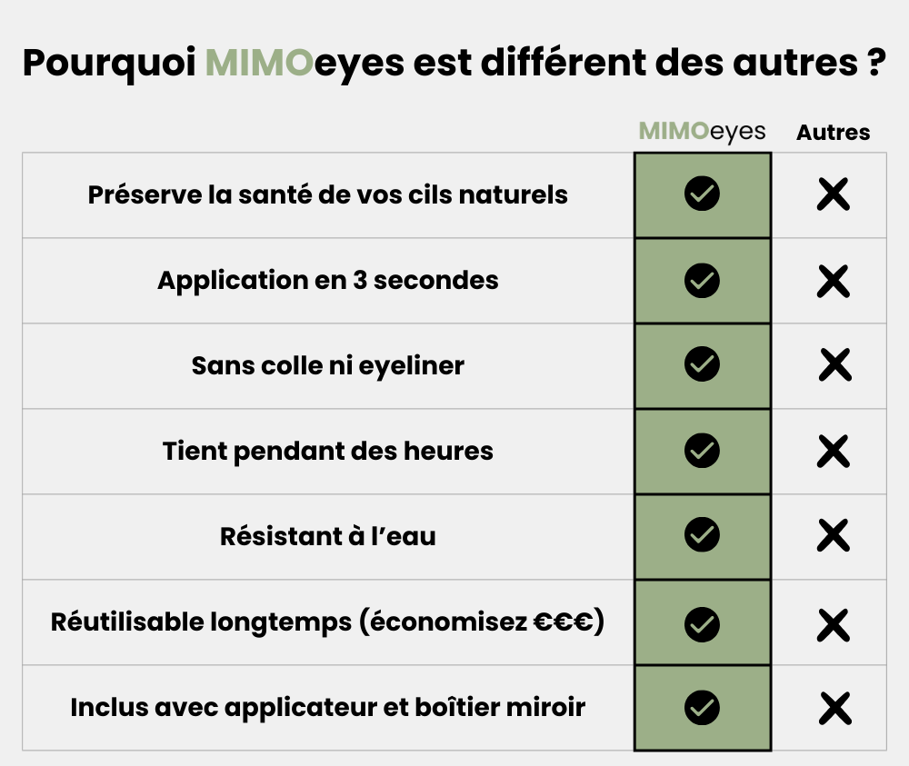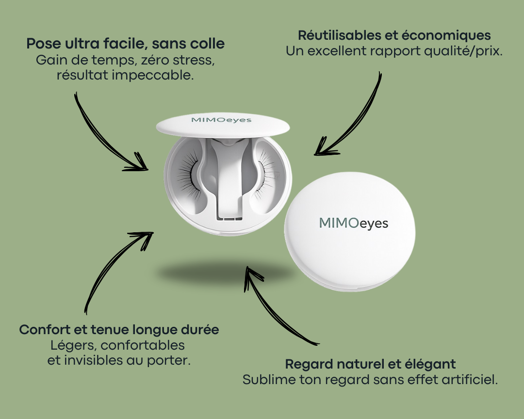 ces cils MIMOeyes me sauvent la vie ! Ayant les yeux sensibles, je suis ravie de ne plus avoir à utiliser de colle. En plus, ils sont super jolis. Je les recommande à 100 %.