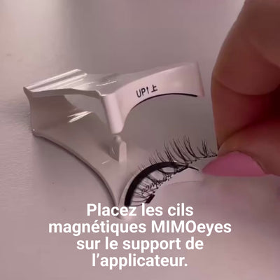 Ouvrez la boîte MIMO Eyes cils magnétiques. Détachez délicatement les cils en les prenant par l’extrémité, puis séparez-les en deux parties.
